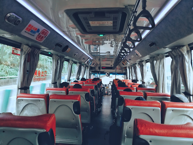 客運準點抵達,我們把厚重的行李箱搬到公車腹腔,一身輕便地坐上視野高高的車廂內,終於才鬆了一口氣。